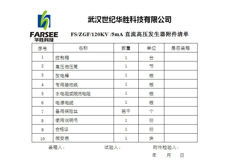 ◆ FS系列直流高壓發生器技術參數